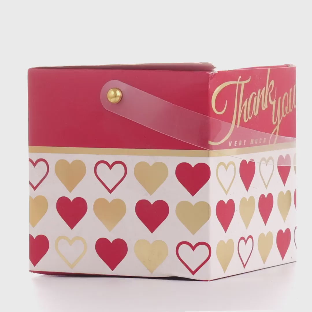 Картонена кутия с дръжка за чаши с червен модел със сърца Thank You