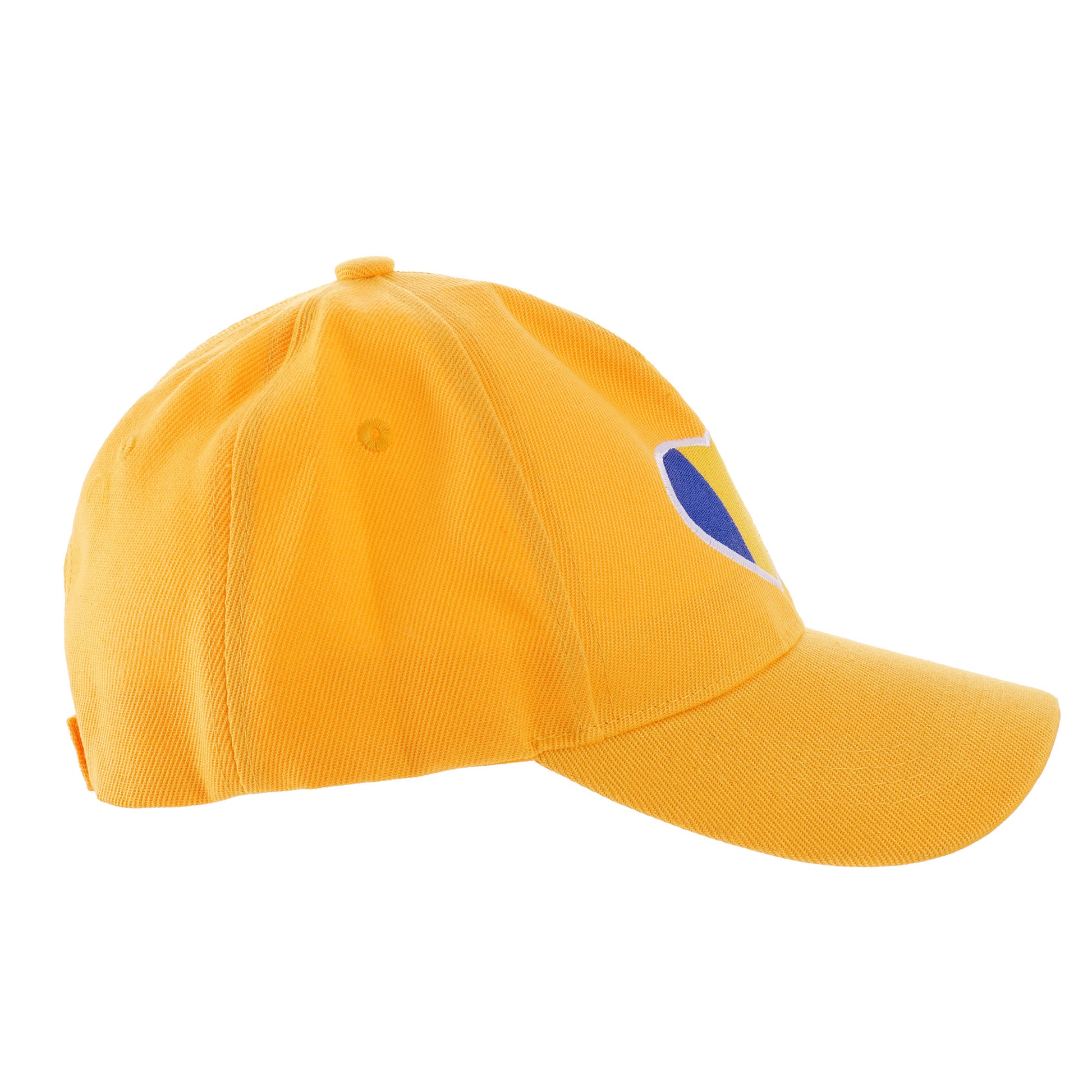 The yellow cap with an embroidered heart in the colors of the Romanian tricolor (blue, yellow, red) is the perfect accessory to show your national pride at events, parades, sports competitions, or national days.