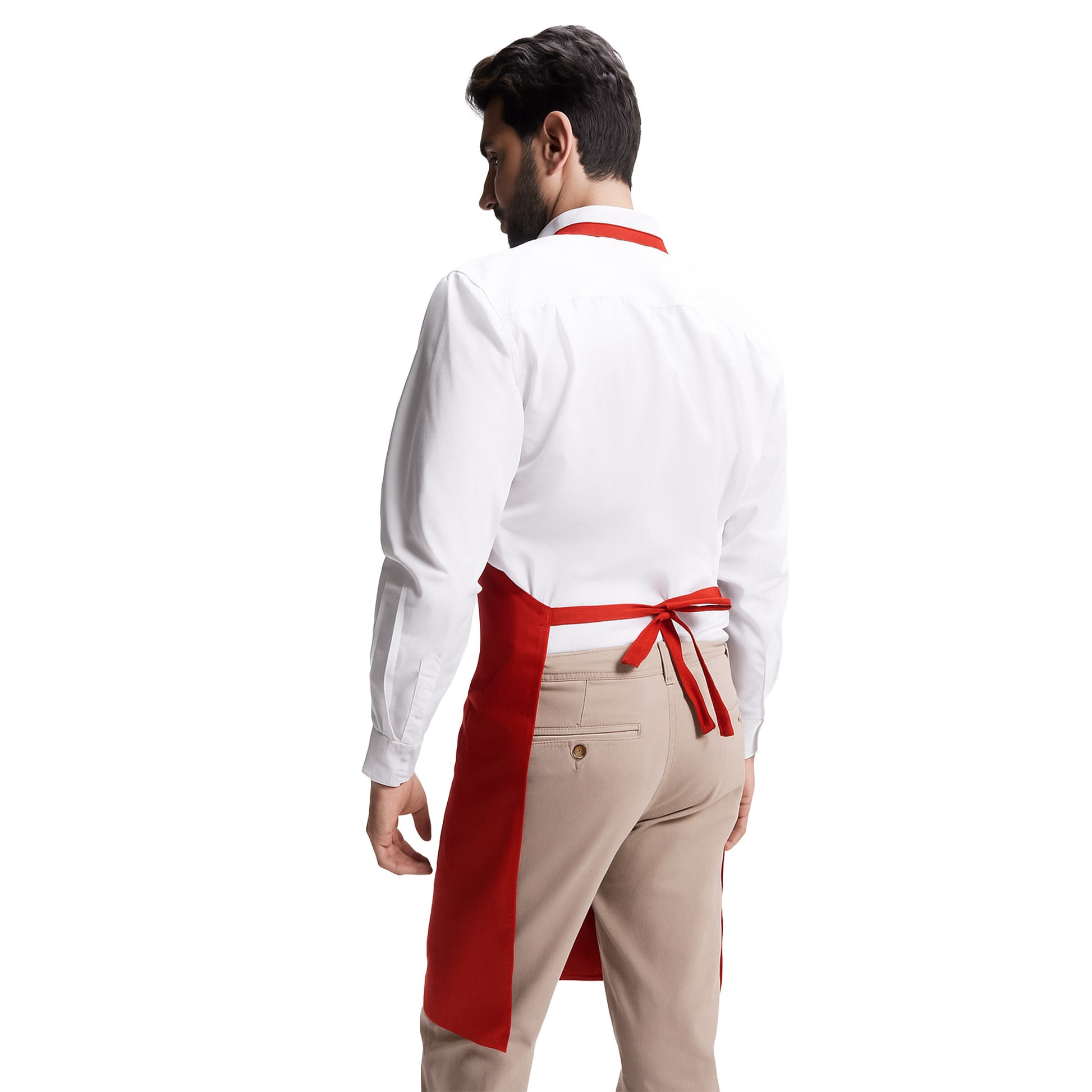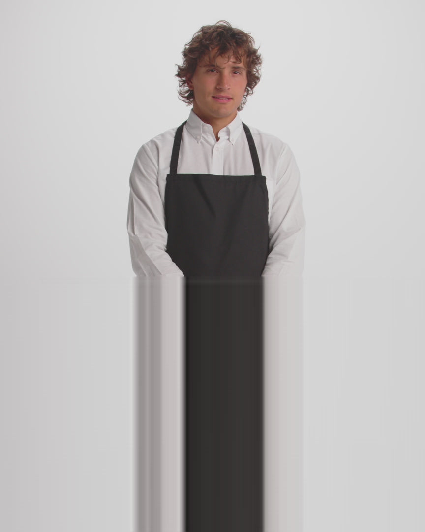 • Apron with neck strap, ties at the back