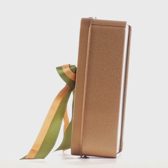 Aranyszínű téglalap alakú fém doboz masnival 12x9x4