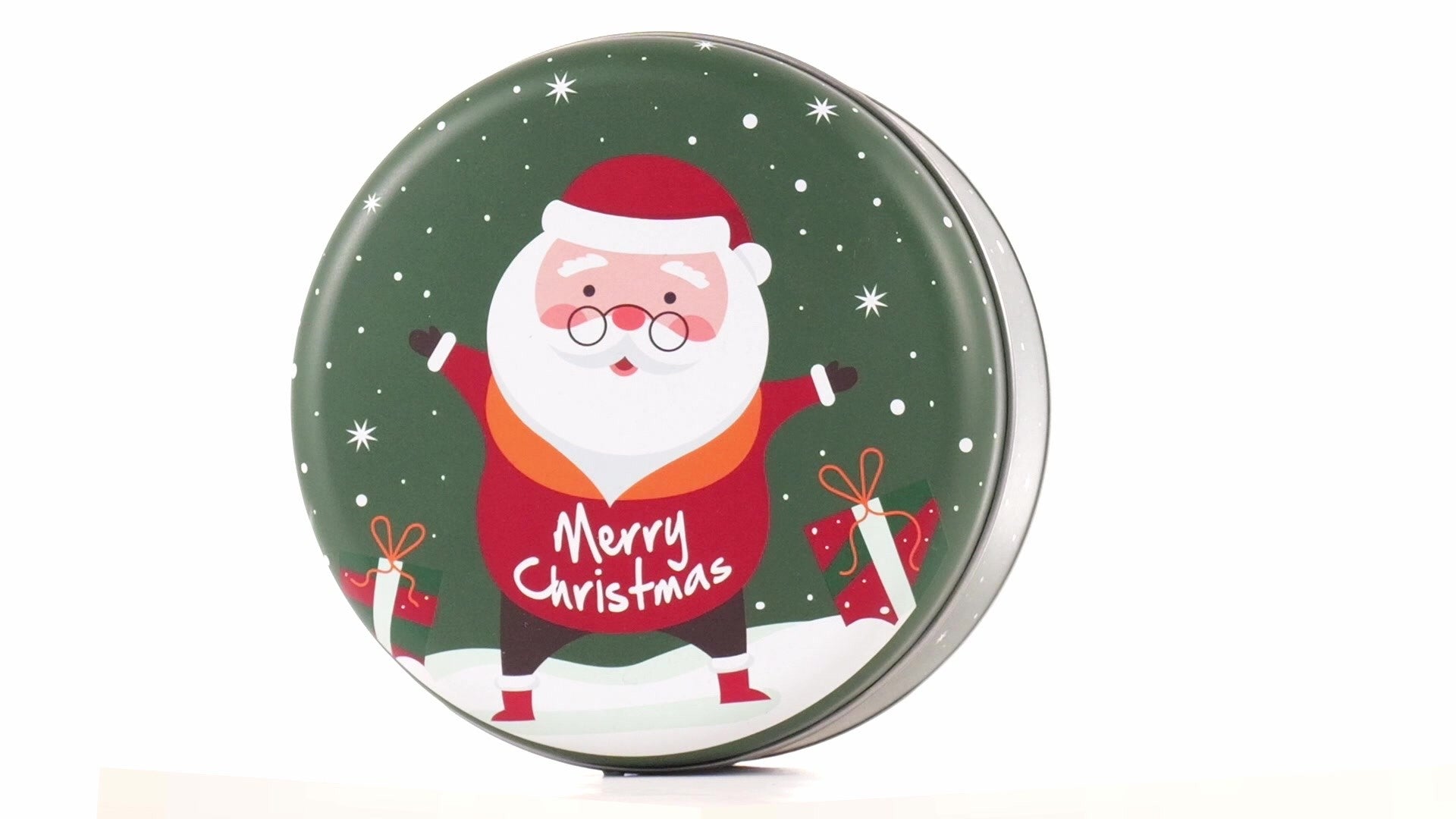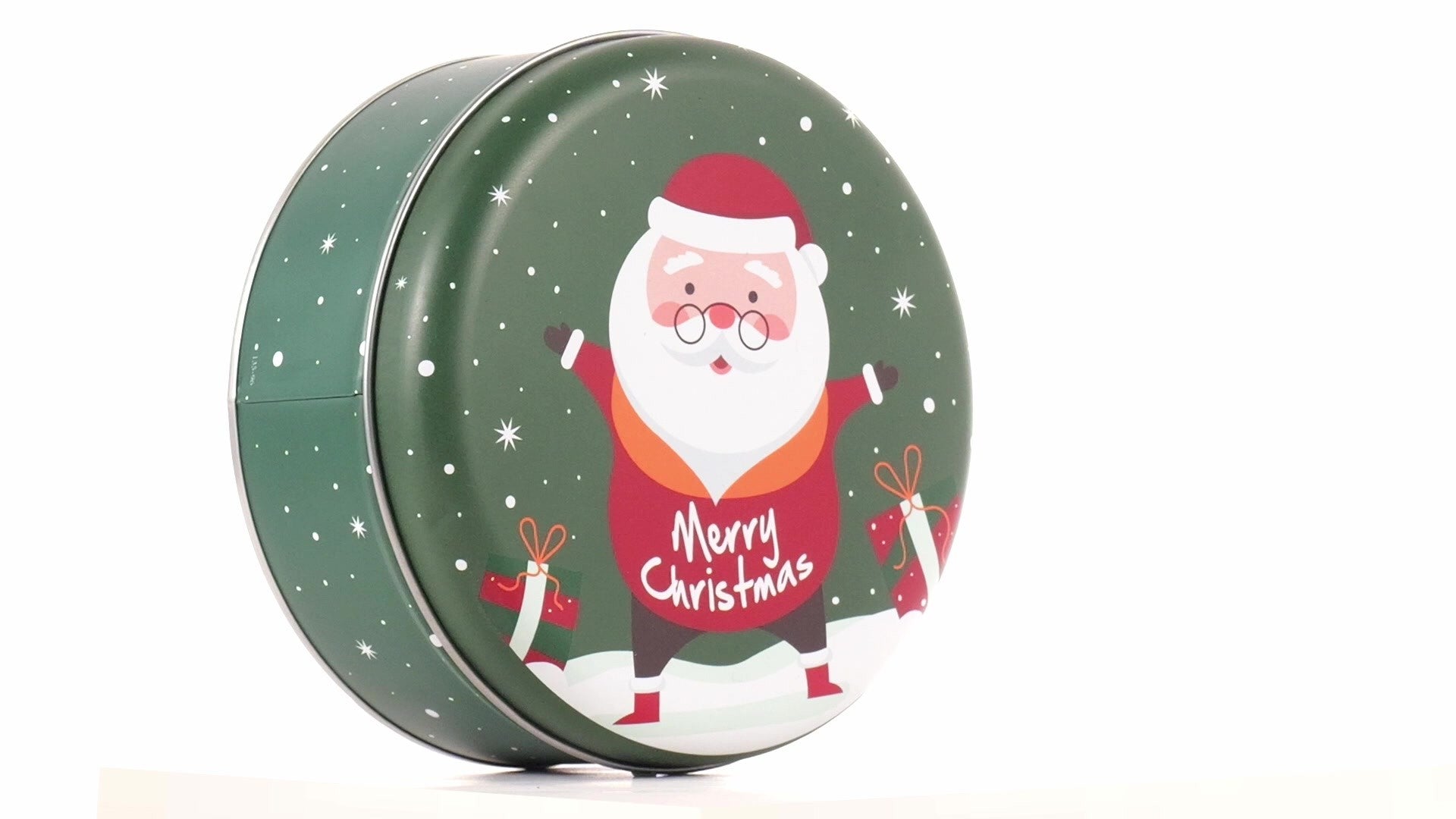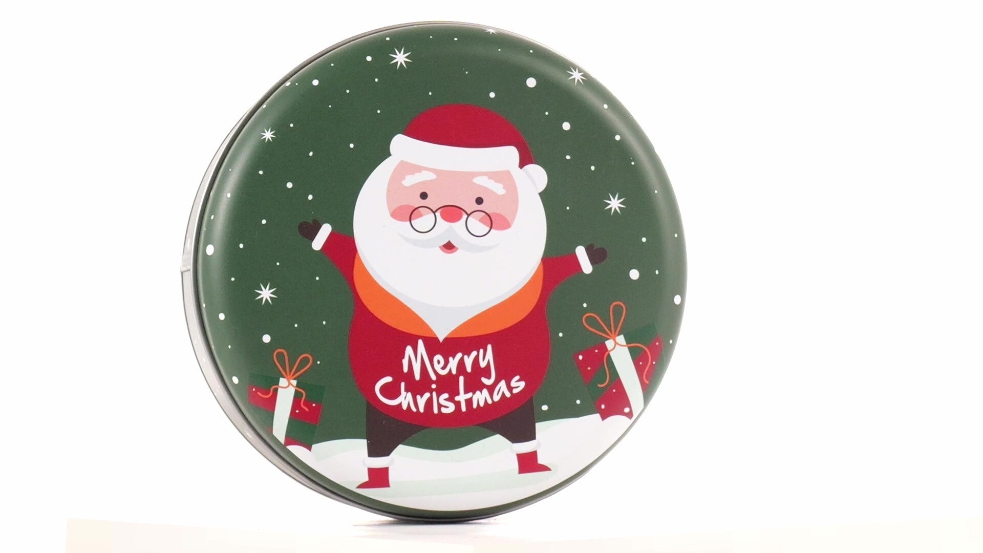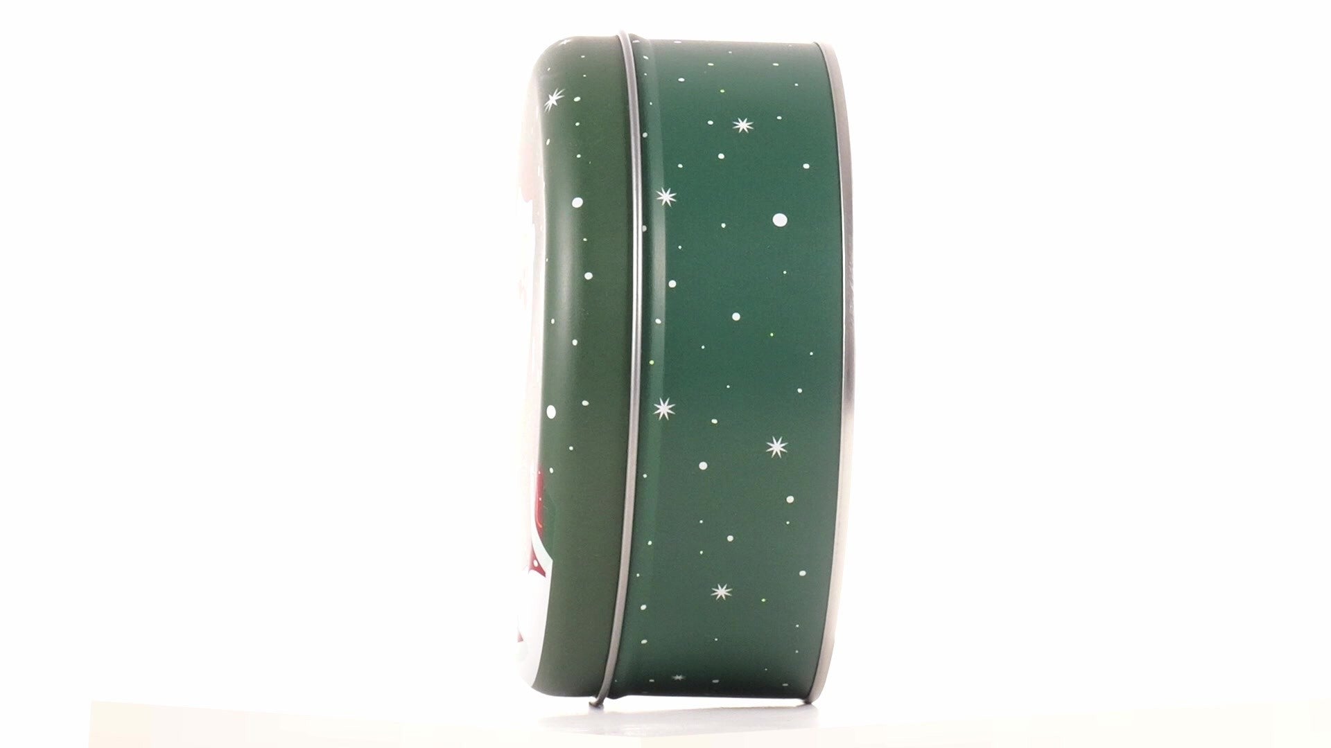Zöld, kerek fém doboz Mikulás mintával
