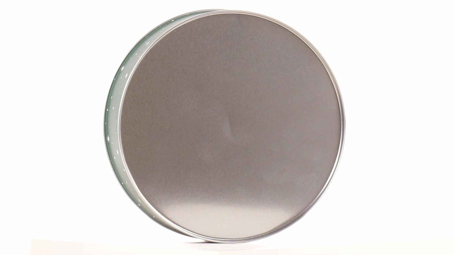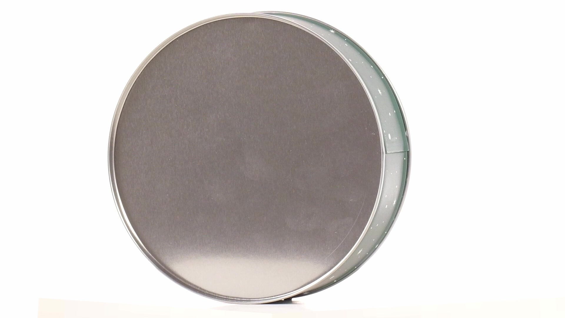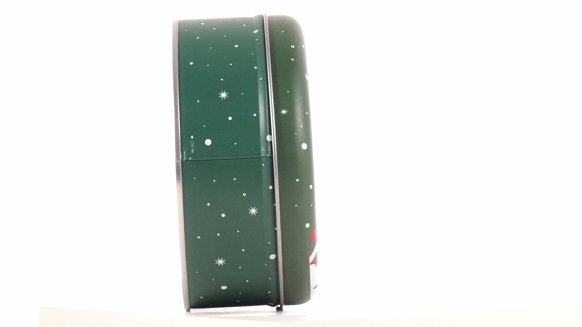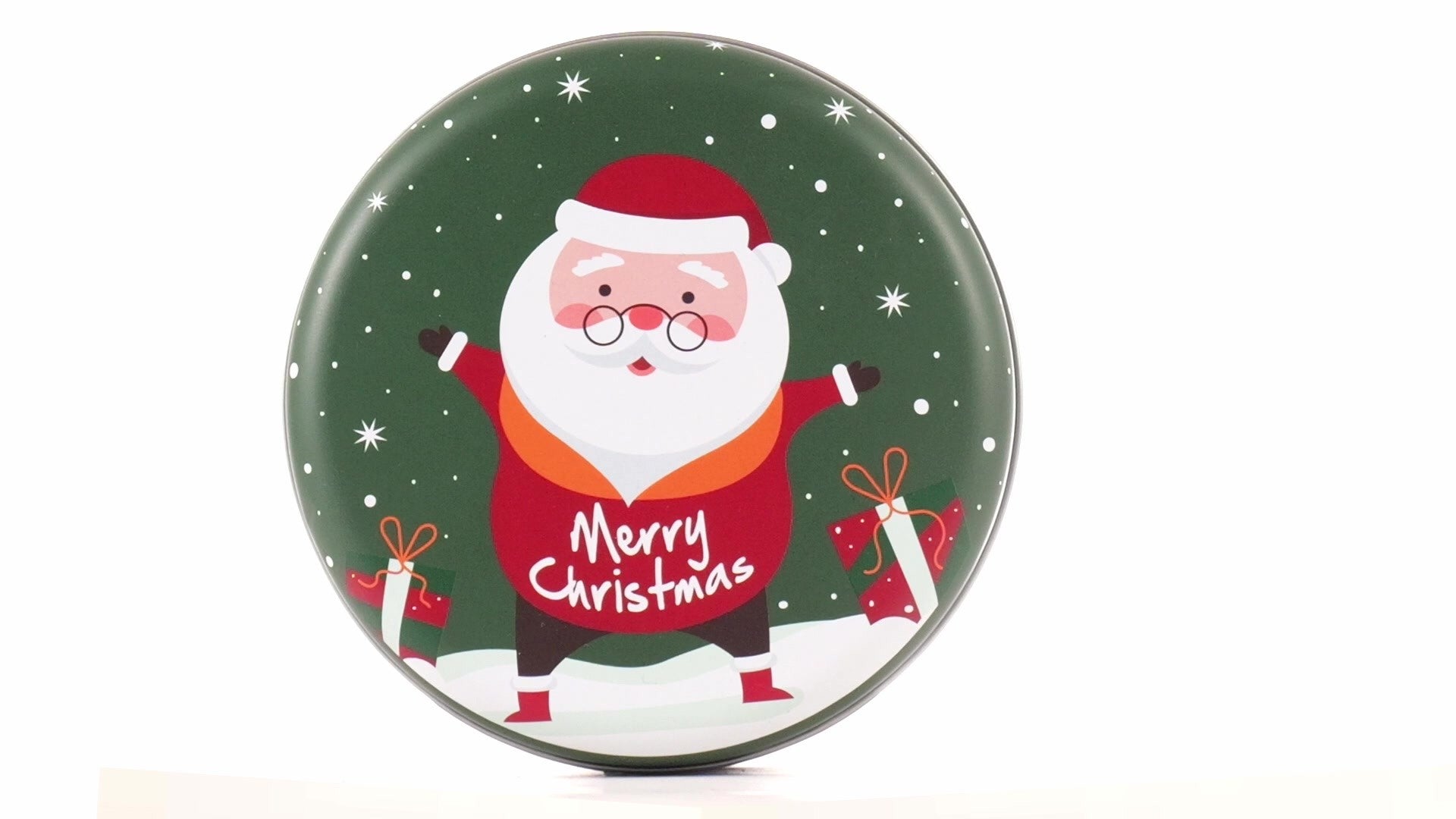Zöld, kerek fém doboz Mikulás mintával