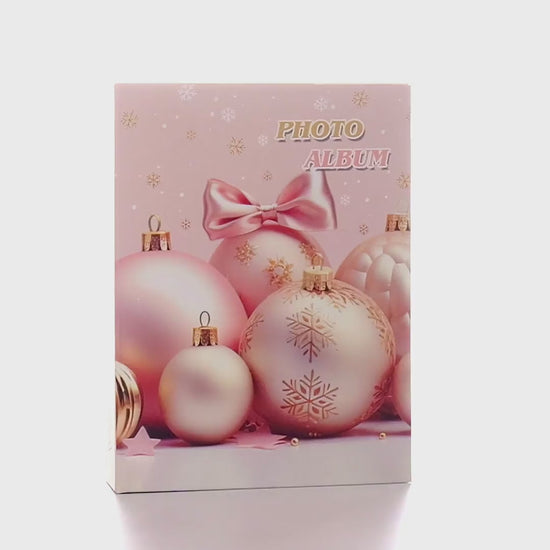Album foto cu tematică de Crăciun, ideal pentru păstrarea celor mai frumoase amintiri din perioada sărbătorilor de iarnă. Coperta este decorată cu elemente festive precum globuri, cadouri, fulgi de nea sau brazi împodobiți, aducând un plus de magie albumului.