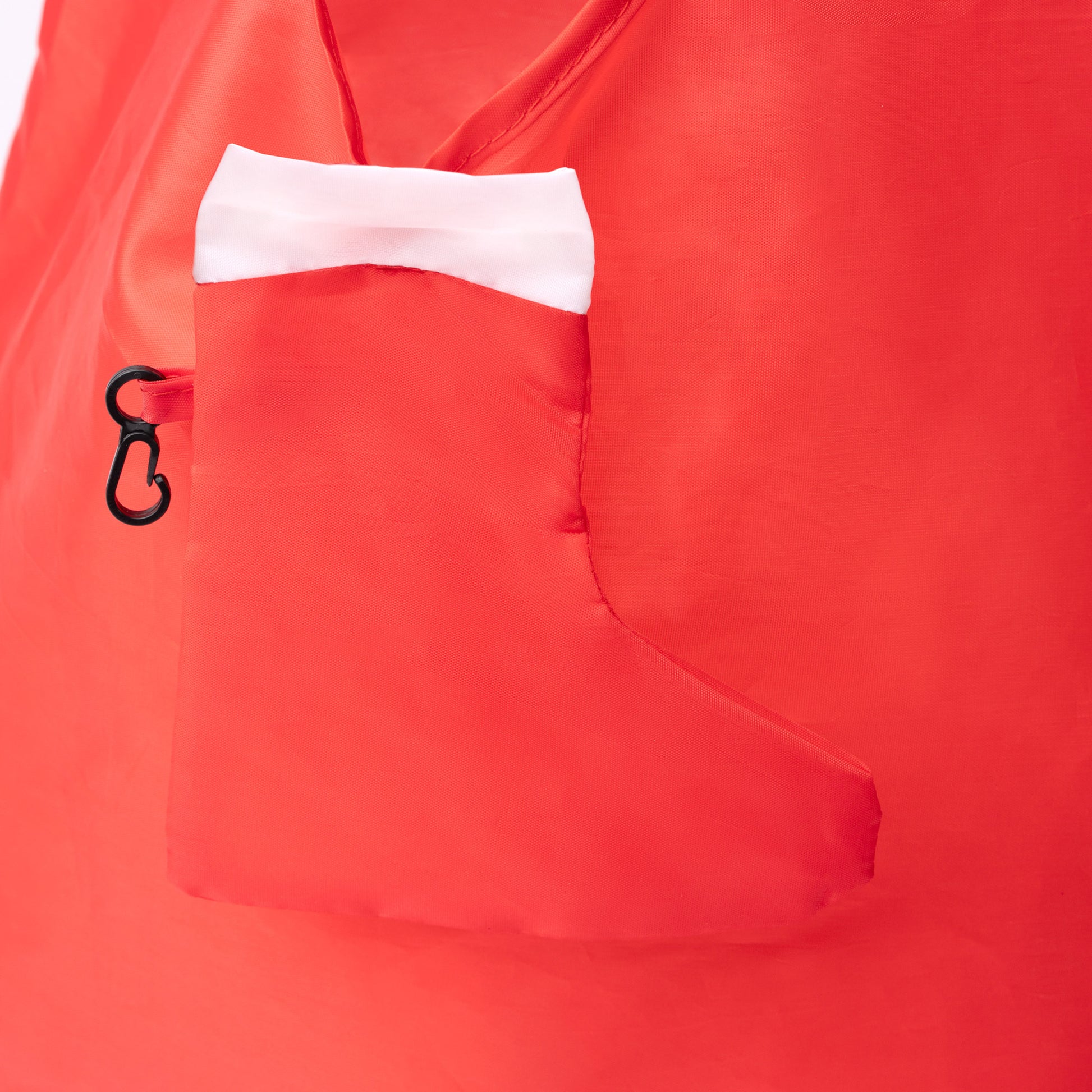 Sacosa pliabilă cu design de ciorap de Crăciun – practică, compactă și perfectă pentru cumpărături în sezonul de iarnă.