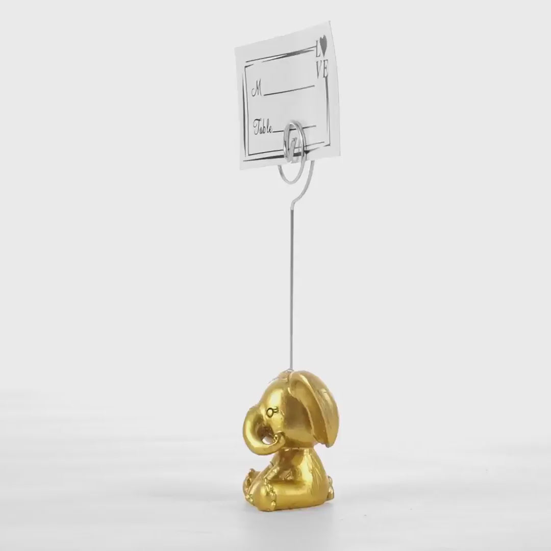 Placeholder metalic in forma de elefant este o alegere practica pentru organizarea meselor la evenimente. Baza stabila permite sustinerea cartonului cu nume, nr de masa sau a altor mesaje. Se integreaza usor in orice decor, de la evenimente elegante pana la mese casual.
